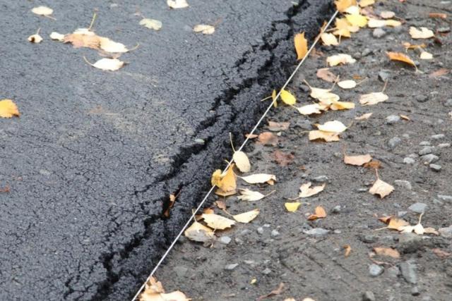 Там про краям уже рушится асфальт. Сегодня на место выехал глава города Игорь Арсентьев. |