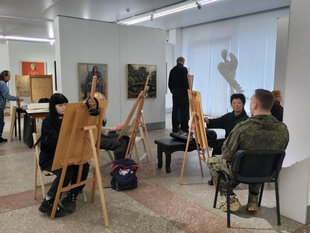 В выставочном зале Союза художников архангельские живописцы выполнили графические портреты жителей Поморья - героев СВО с натуры.