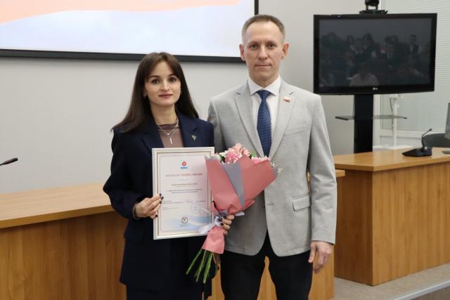 Благодарственное письмо Совета депутатов Северодвинска за добросовестный труд, личный вклад в развитие производства и науки Северодвинска вручено Марии Кирилловой, инженеру-конструктору научно-исследовательского проектно-технологического бюро «Онега».