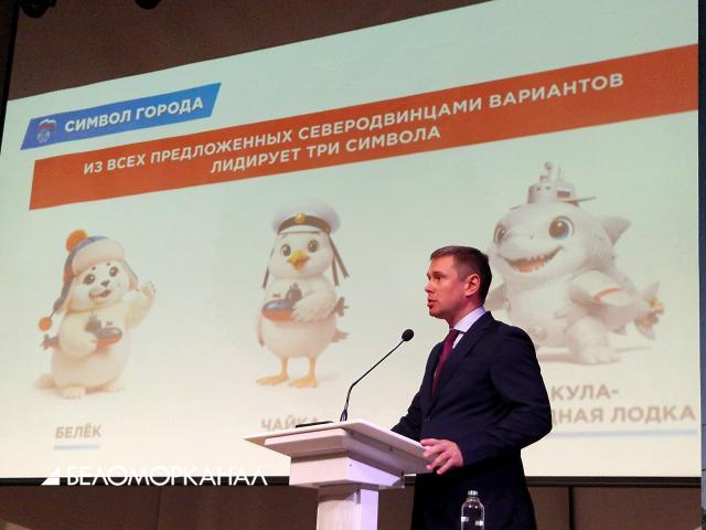 Добавим, что зал оживился, когда речь зашла о символах Северодвинска: бельке, чайке и акуле-подводной лодке.
