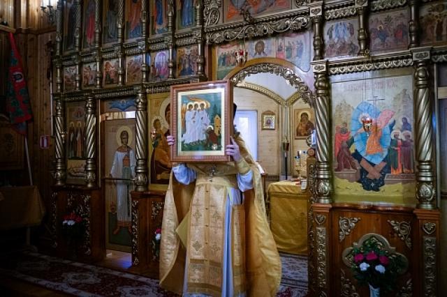 Храм на Яграх получил в дар икону явления Святой Троицы преподобному Александру Свирскому |