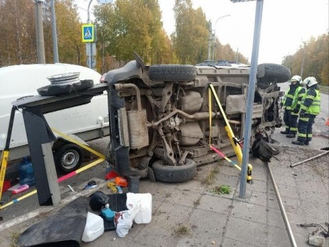 В Архангельске перевернулся автомобиль, наехавший на леерное ограждение