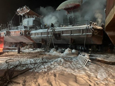 На территории судоверфи в Архангельске произошел пожар