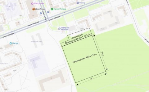 Также в рамках аукциона компанией приобретен земельный участков площадью 4,12 га в районе пр. Победы – пр. Труда. Здесь запланировано строительство 9-этажного жилого комплекса площадью около 36 тыс. кв. м. Помимо этого Группа Аквилон выполнит благоустройство муниципального участка площадью 1,83 га.