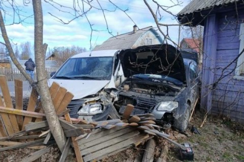 В Каргополе два автомобиля влетели в забор жилого дома