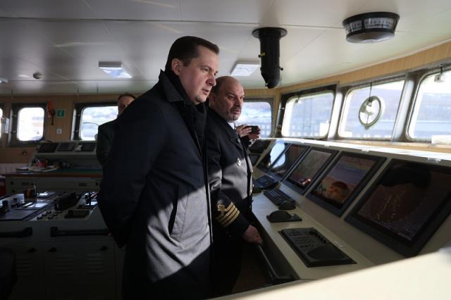 Губернатор Цыбульский в Мурманске побывал на рыболовном траулере «Кулой» |