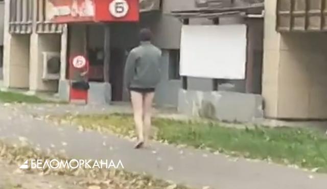 Вернее, без трусов и обуви, но в куртке и шапке. В таком виде гордой походкой он шагал сегодня по Профсоюзной. |