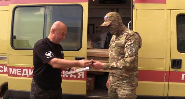 В ходе гуманитарной миссии в Донецкой народной республике, руководитель волонтерского движения «Ангелы фронта» Алексей Осмоловский вручил ключи от машины скорой помощи «Фиат-Дукато» представителям 1-й гвардейской мотострелковой Славянской бригады. |