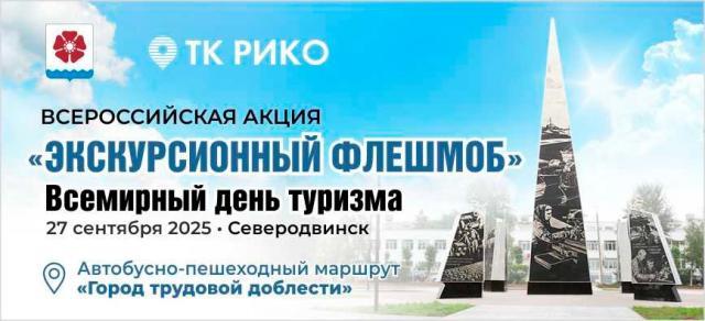 27 сентября транспортная компания «Рико» приглашает северодвинцев и гостей города отметить Всемирный день туризма. Всероссийская акция IX экскурсионный флешмоб состоится в этот день по всей стране в 12 часов по местному времени. Требуется регистрация! |