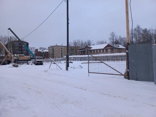 Стройка развернулась на пустыре напротив здания бывшего военкомата Минобороны России на проспекте Беломорском. С началом работ ознакомились городские депутаты.