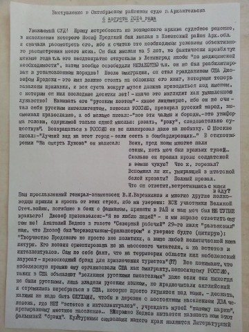 БК уже сообщало, что северодвинец Альберт Буторин ведет неравную борьбу против музея «Джозефа Бродски» и, посвященных ему ежегодных литфестивалей в Архангельской области. Он подал исковое заявление в Октябрьский районный суд Архангельска, ответчиком по которому выступает губернатор области Игорь Орлов. Исковое заявление северодвинца называлось «О принуждении к СОВЕСТИ и компенсации морального вреда».