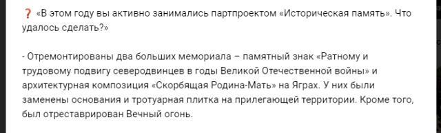 И ещё - о языке опубликованных высказываний. Вечером 15 июня, за сутки до рассказа о треснувшем памятнике, секретарь северодвинского местного отделения партии “Единая Россия” Николай Трухин высказал в стиле “спасибо партии родной” подробнейший отчёт. (Почему фото Николая даже в официальных партийных релизах демонстрируют образ то ли сильно пьющего, то ли побитого, то ли больного человека - вопрос отдельный).