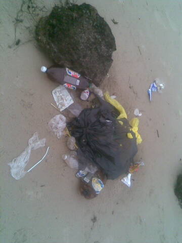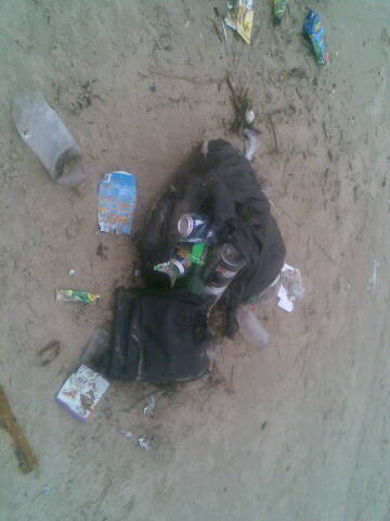 Как сообщил читатель БК, сегодня во время прогулки на берегу Ягр он обнаружил порядка 15-ти разбросанных мешков с мусором. Рядом много раскиданной грязи, бутылок, часть мешков замыто водой, возможно, некоторые их них смыло в море. Все это последствия "Большой уборки". Люли собирали мусор, а соотвествующие службы поленились его вывезти.
