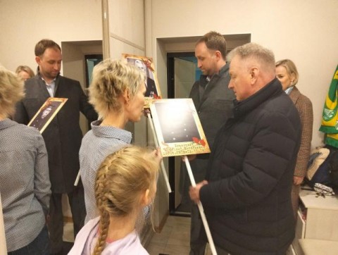 Елене Пахомовой вручили портреты дедушек ее мужа. Главстаршина Анатолий Ильинский служил на Северном флоте. Потом был переведен на Балтику. За участие в десантной операции на острове Соммерс, затем – в боевом тралении Финского залива. Награжден орденом Красной Звезды. Старший лейтенант Алексей Пахомов воевал в знаменитой 8-й гвардейской дивизии им. генерала Памфилова. В боях за город Новосокольники Псковской области в ноябре 1942 года возглавил два взвода, командиры которых были убиты, и контратакой остановил наступление немцев. В марте 1943 года в бою за город Холм Тверской области заменил командира роты и в наступлении занял позиции противника. Награжден медалью «За отвагу», орденом Красной Звезды.