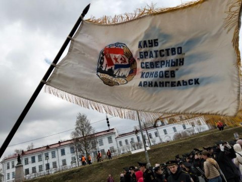 - Этот флаг Клуба «Братства Северных конвоев» основанного в 1991 году, когда праздновалась юбилейная годовщина прихода первого союзного конвоя «Дервиш» в Архангельск. Тогда ещё были живы ветераны - участники Северных конвоев. Они были очень активны, а клуб был международным. Сейчас в его составе – потомки участников конвоев, а сам флаг является музейным предметом. Но каждый год на День Победы мы его несём перед колонной Бессмертного экипажа как важный символ, потому что мы историю Северных конвоев не забываем, не вычёркиваем и не переписываем. Это важнейшая страница в истории Архангельска, - подчеркнул перед началом шествия директор Северного морского музея Евгений Тенетов.
