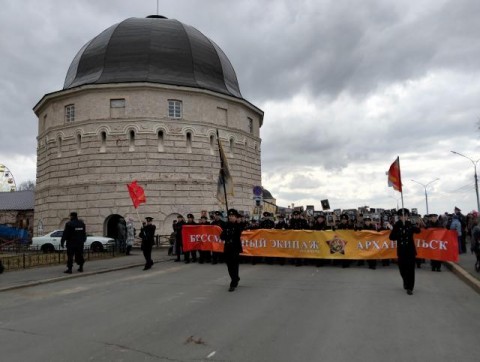 В День Победы самой многочисленной колонной Бессмертного полка в столице Поморья вновь стал Бессмертный экипаж. В его составе прошли более 3,5 тыс. человек, они несли портреты моряков, как участников союзных конвоев, так и тех, кто в годы Великой Отечественной войны был участником Битвы за Арктику на самом северном фланге огромного фронта, а полем боя для них был суровый Северный ледовитый океан.