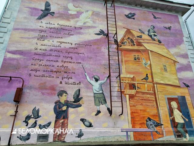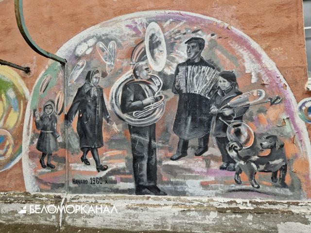 Поэтому предлагаем полюбоваться тем, что пока остаётся на стенах домов в рамках этого проекта, созданного в 2021 году и поддержанного Фондом Президентских грантов. Некоторые рисунки требуют реставрации.