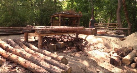 Небольшая пилорама, развернута прямо в лесу недалеко от линии боевого соприкосновения. Здесь силами бойцов одной из частей, не просто делают столь необходимые доски и брус. Из полученных материалов в итоге получается, то, что мало кому удается увидеть.