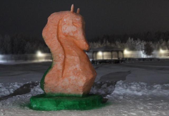 В колонии-поселения №3 УФСИН России по Архангельской области (п. Талаги, Приморский округ) состоялся традиционный творческий конкурс «Снежные фантазии». По решению жюри, в состав которого вошли сотрудники отдела по воспитательной работе с осужденными, первое место было присуждено команде отряда №1. Осужденные мужчины создали масштабную скульптуру - величественную вороную лошадь, которая стала центральным украшением режимной территории учреждения. Благодаря мастерству исполнения эта композиция стала бесспорным лидером конкурса. Второе место заняла работа, изображающая яркого шахматного коня. Члены комиссии отметили оригинальность идеи и аккуратность исполнения этой снежной фигуры.
