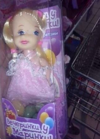 А какие игрушки российско-китайского производства показывают северодвинцы! «Купила (вернее, заказала в одном из интернет - магазинов) племяннице в подарок куклу российского производства. Когда куколку раздели, чтобы помыть и постирать одежду, вскрылся сюрприз». Поглядите.