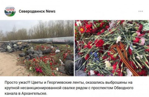 В Кирове разразился скандал: там убрали цветы, возложенные к Вечному огню. Люди называли это кощунством. В Архангельске цветы вместе с георгиевскими ленточками от монумента Победы попросту увезли и раскидали у теплотрассы на Обводном.