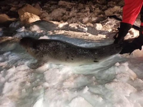 Накануне вечером на трассе Северодвинск-Архангельск, в районе Пирсов, недалеко от места проведения ремонтных работ автодороги, рабочие заметили тюленя. Раненое животное, потерялось, искало морскую воду.