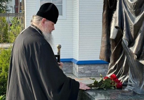 В Северодвинске митрополит Корнилий возложил цветы к памятнику покровителям семьи святым Петру и Февронии
