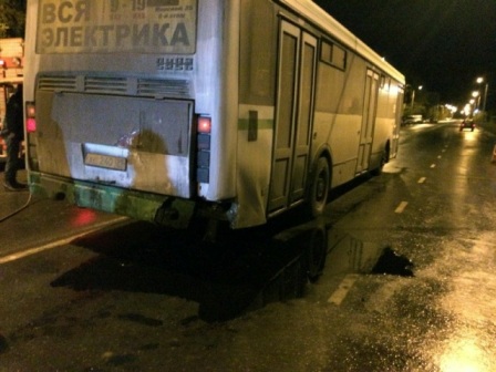 Оба транспортных средства двигались в попутном направлении по ул. К. Маркса. Автобус отъезжал от остановки и набирал скорость, в это время в его правый задний угол въехала легковушка. Повреждения автобуса минимальны, а у легкового автомобиля оказалась искорежена вся левая сторона. По словам очевидцев, в машине находился еще один человек, который скрылся с места происшествия.