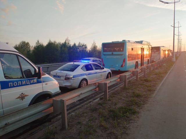 Ослепило солнце. На Ягринском мосту произошло два ДТП с участием автобусов и патрульных автомобилей