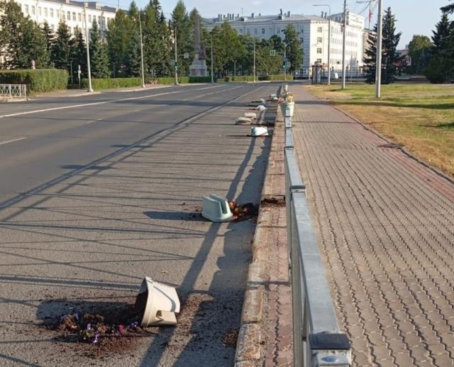 На Троицком проспекте областного центра сегодня утром оказались повреждены навесные вазоны и клумбы у Доски почёта. Об этом сообщает сегодня архгорадмин.