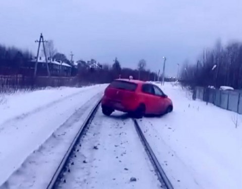 Инцидент произошел сегодня, 26 февраля, утром вблизи ул. Ленина города Котлас. Автомобилистка перепутала повороты и поехала по железнодорожным путям.