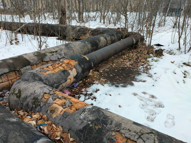 На теплотрассе недалеко от стадиона "Беломорец" частично отсутствует теплоизоляция трубопроводов и сами они, мягко говоря, в жутком состоянии. |