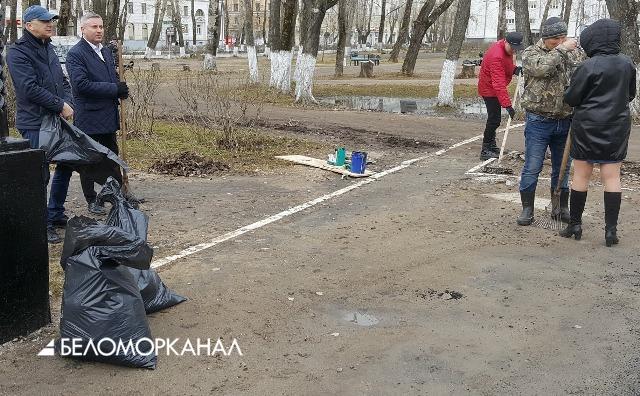 Сегодня площадку памятника и Сквер ветеранов убирали от мусора и приводили в порядок чиновники администрации Северодвинска.