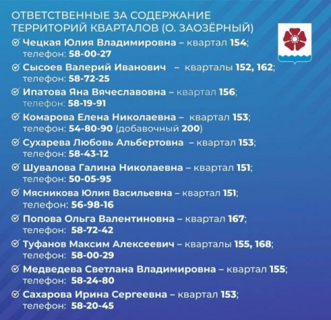 Ранее глава города корабелов Игорь Арсентьев публиковал списки квартальных, ответственных за территориями на Яграх, а также старом-новом городе. " data-title="В Северодвинске назвали фамилии квартальных округа Заозерный"> Категория: ЖКХ