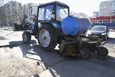 Для этого на технику разместили щётки и ёмкости для увлажнения подметаемой поверхности.