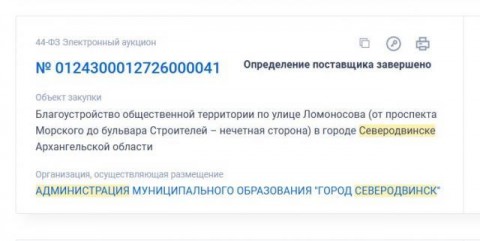 В Северодвинске состоялся аукцион выполнение работ по благоустройству общественной территории по улице Ломоносова (от проспекта Морского до бульвара Строителей – нечетная сторона).