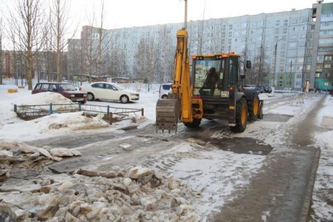 В Северодвинске подрядчикам поставлена задача вычистить тротуары и устранить колейность на проездах до морозов