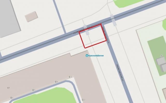 В районе перекрёстка с улицей Профсоюзной, если ехать от площади Егорова к улице Железнодорожной. |