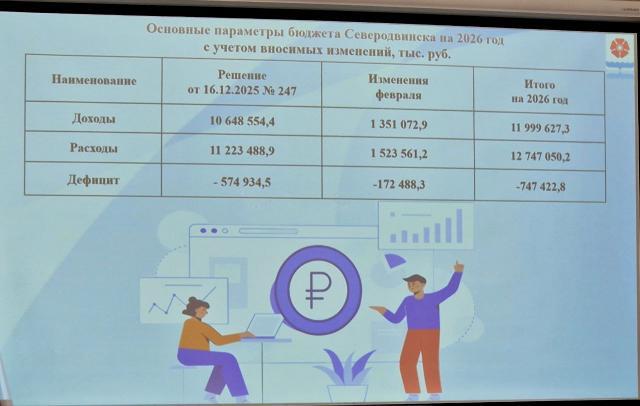 На февральской сессии Совета депутатов внесены изменения в бюджет Северодвинска на 2026 год