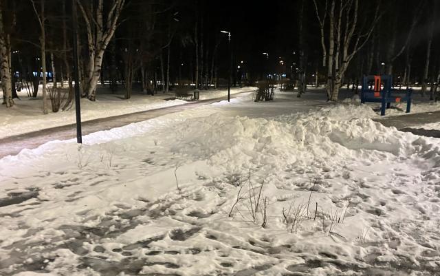 "Парк за НТЦ Звёздочка. Последние уцелевшие кусты у скейтпарка, теперь по ним ездит техника и складирует на них снег. Предыдущий подрядчик уничтоженные кусты с другой стороны парка, в прошлую зиму, так и не восстановил", - написал неравнодушный северодвинец в городской группе в соцсети и приложил фото. |