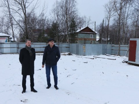 Стройка развернулась на пустыре напротив здания бывшего военкомата Минобороны России на проспекте Беломорском. С началом работ ознакомились городские депутаты.