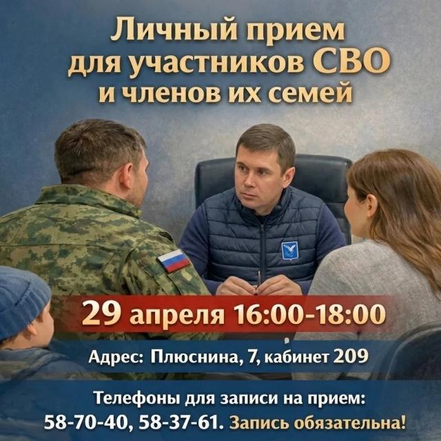 Глава Северодвинска проведет личный приём участников СВО и членов их семей |